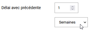 Ensuite, il y a la partie Délai avec précédente. Il est utile lorsque vous planifiez vos tâches dans votre agenda. Il permet d'établir un délai fixe entre les dates où vous accomplissez vos différentes tâches. Par exemple, voici comment installer un délai d'une semaine :